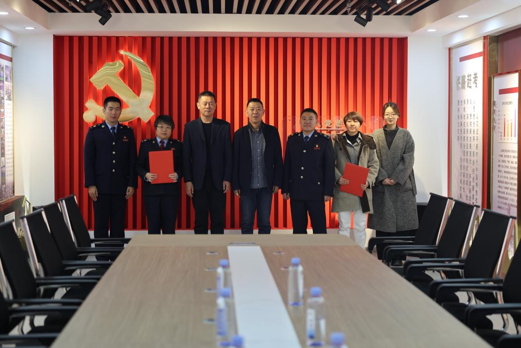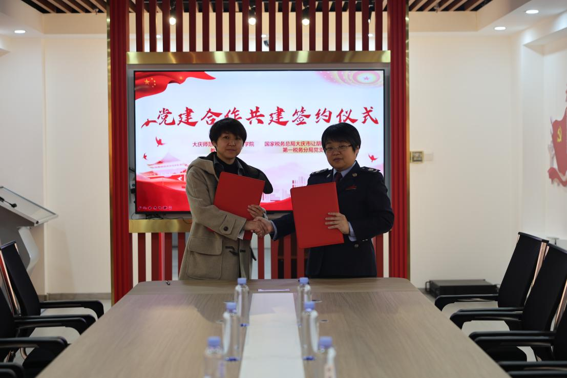 为贯彻落实习近平总书记关于切实加强和改进高校党建工作的重要指示精神,进一步推动党建工作与业务深度融合,11月8日,滚球买球的app官网教工党支部与大庆市让胡路税务局第一税务分局党支部签订党建共建协议。学院党总支副书记陈超、教工党支部副书记曲晔、宣传委员孙艾嘉、让胡路区税务局副局长战卫国, 让胡路区税务局机关党委专职副书记刘立国、第一税务分局党支部书记刘莹出席了签约仪式。