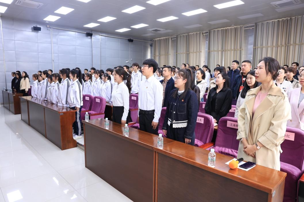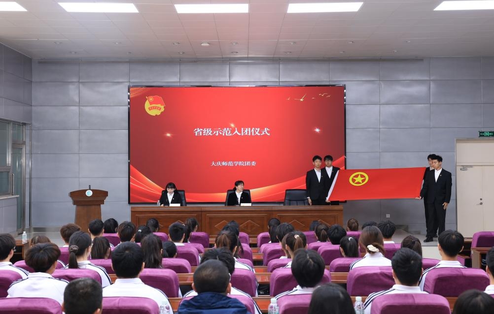在激昂的国歌声中,入团仪式正式拉开帷幕。活动现场庄重而热烈,全体人员庄严肃立,向国旗行注目礼,在鲜艳的团旗下庄严宣誓,表达对中国共产主义青年团的无限热爱和崇高敬意。在团歌的旋律中,老团员们为新团员郑重地佩戴上团徽。团徽闪耀,象征着责任与使命的传承,新团员们接过这一光荣的标志,也接过了为共产主义事业奋斗的接力棒,表达了他们对共青团的坚定信念和为实现中华民族伟大复兴而努力奋斗的决心。