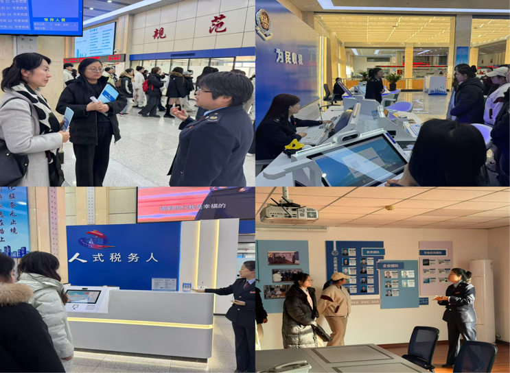 活动伊始,让胡路区税务局工作人员带领学生探访办税服务厅。从服务分区的功能布局到掌上办税平台的数字化效能,从“一带一路”税收服务工作室的职能纵深到志愿服务团队的便民实践,将抽象的税收体系转化为可感知的实务场景,让青年学子直观触摸到新时代税务治理的“民生温度”与“专业精度”。