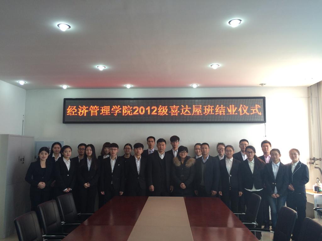 2015年12月17日9时,滚球买球的app官网2012级喜达屋订单班结业仪式在五教402隆重举行,这也是我院第一届喜达屋订单班结业,意义重大。出席仪式的有张平院长、孔若东书记、院长助理刘楠、郝毓业老师、田泽民老师、李国征老师,同时大庆万达喜来登酒店代表人力资源部王影经理应邀参会,为2012级旅游管理订单班所有同学颁发结业证书。