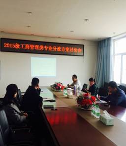 2016年3月30日13:30,在第五教学楼402会议室,滚球买球的app官网召开了2015级工商管理类专业分流方案讨论会,本次为领导班子扩大会议,参会人员包括学院领导、系主任、学生书记、辅导员、办公室主任、教学秘书,会议由滚球买球的app官网院长助理刘楠老师主持。