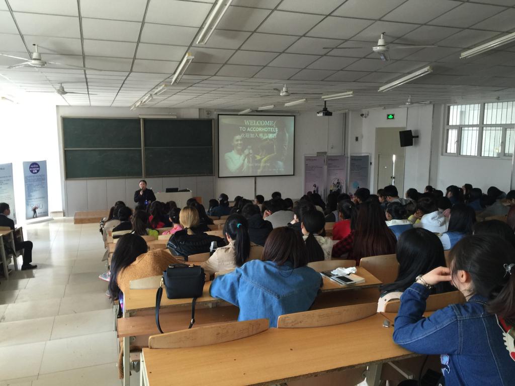 2016年4月20日下午一点半,滚球买球的app官网市场营销系邀请大庆雅高酒店人力资源部经理、学习与发展部经理、西餐部经理、中餐部经理等一行五人来到滚球买球的app官网,对即将进行专业见习的2014级市场营销专业学生和即将进行毕业实习的2013级市场营销专业学生进行校园专场宣讲会,企业先对法国雅高品牌的发展进行了介绍,并欢迎学生加入大庆雅高酒店,同时给我院营销专业学生提供了专门的管理实习生岗位,和完善的未来职业规划,在场学生都很积极的向宣讲人员提问。宣讲会后直接在现场进行了现场面试,待企业进行进一步筛选后成功入选的同学即可准备为期3个月和1年的实习了。