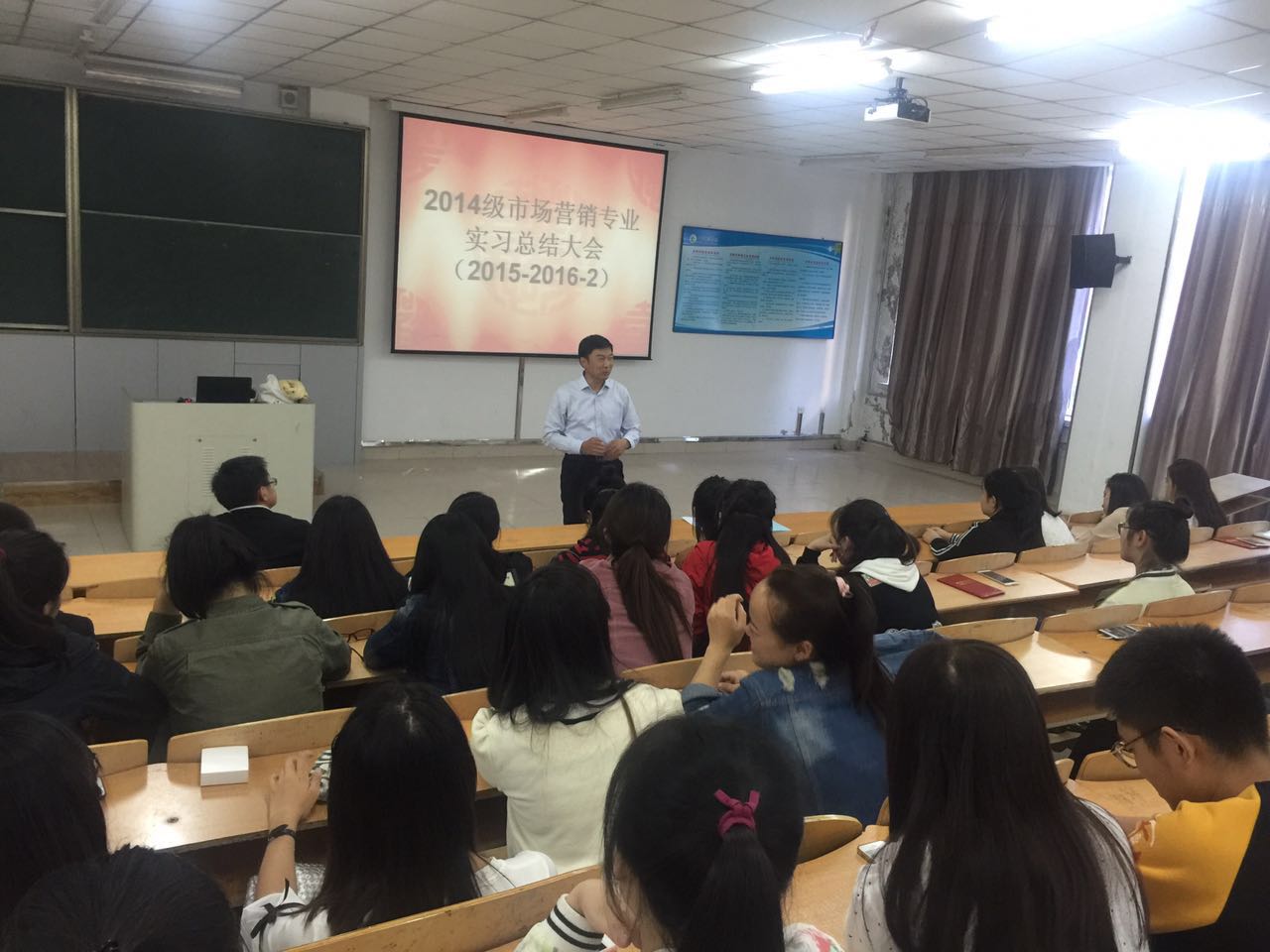 2016年9月21日下午14:30,滚球买球的app官网市场营销系在主楼1-4教室举行了“2014级专业见习总结大会”,滚球买球的app官网孔若东书记、市场营销系于珊珊、孙伟仁老师参加了大会,会议由市场营销系主任尚德萍主持。