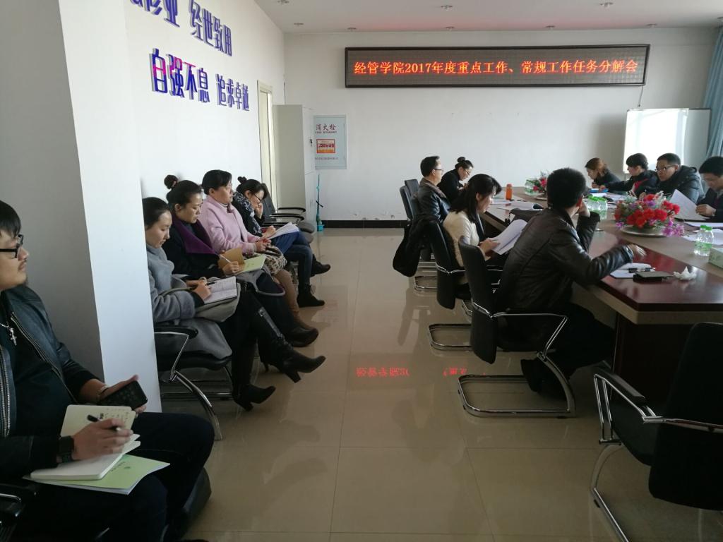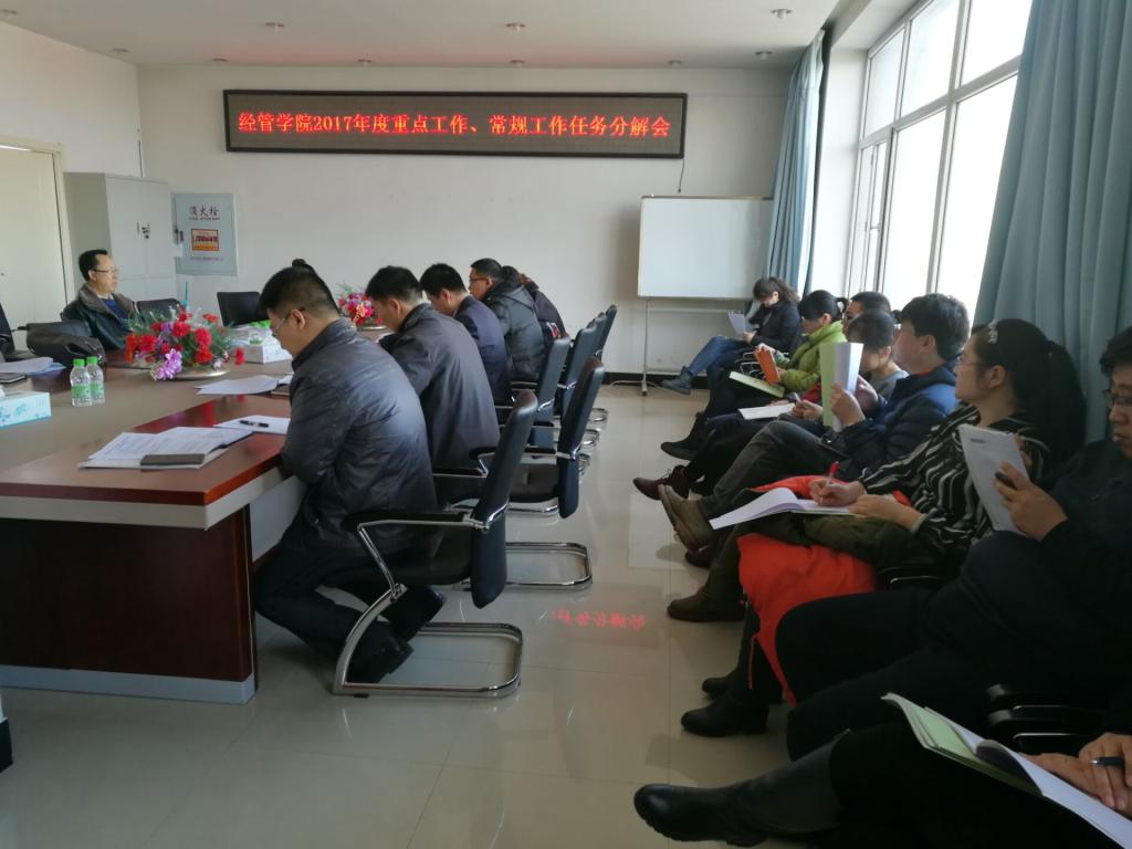 2017年3月8日13:30分,滚球买球的app官网在院402会议室召开了“滚球买球的app官网2017年度重点工作、常规工作任务分解会”,学院全体教职工参会,会议由院长张平主持。