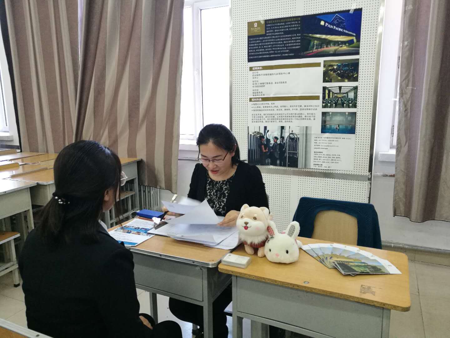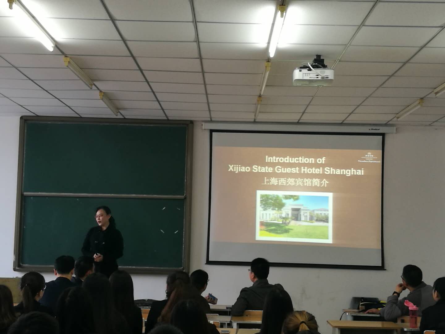 2018年3月27日下午13:30分,上海西郊宾馆人力资源经理陈经理、上海皇廷国际酒店集团人力资源总监殷总监、宁波东港喜来登酒店副总经理杨总、宁波泛太平洋大酒店人力资源经理胡经理来我院进行实习宣讲,2015级酒店管理专业学生参加了宣讲并进行了现场定岗面试。