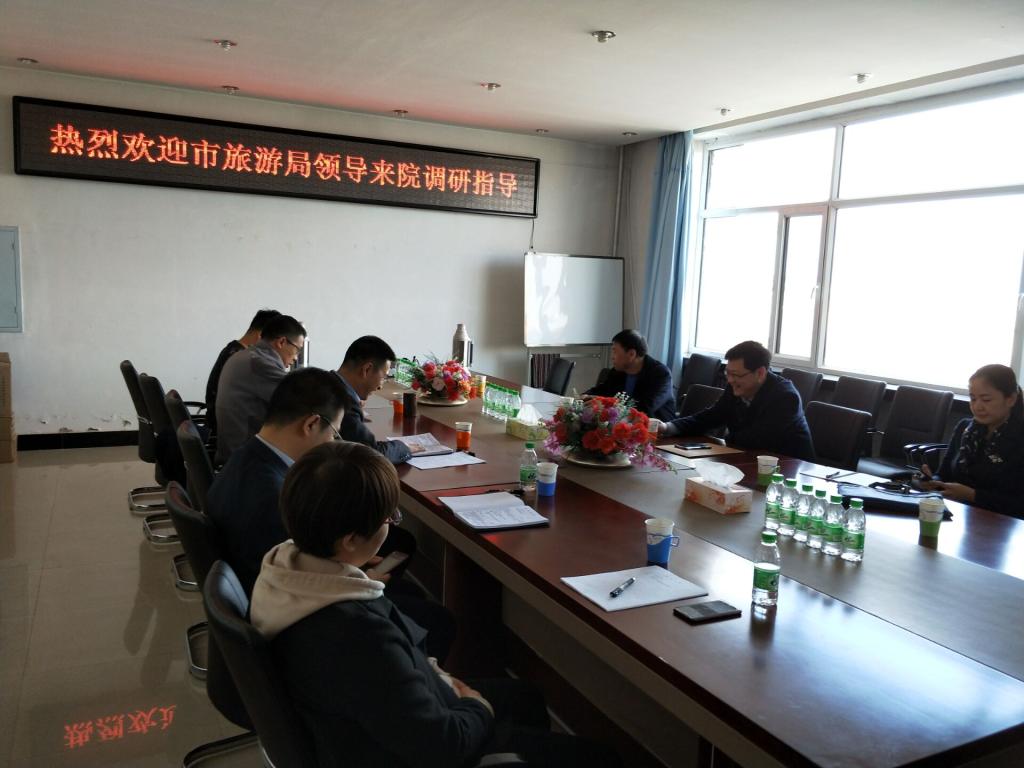 2018年4月3日下午15:30分,旅游局柴副局长一行三人来我院进行调研,张平院长、刘楠副院长、邬德林副院长及旅游管理系教师参加座谈,共同针对政校合作具体问题展开讨论。