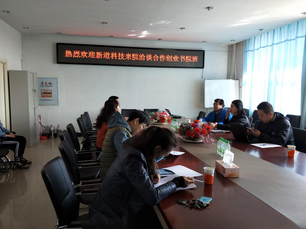 4月16日上午,我校与新道科技股份有限公司黑龙江省分公司在学院402会议室举行共建双创书院洽谈会。新道科技股份有限公司黑龙江分公司李英奇总经理、新道科技股份有限公司北京分公司高老师等一行三人,校双创学院院长张虹教授,滚球买球的app官网院长张平教授及教学管理、学生管理部门同志参加会议。