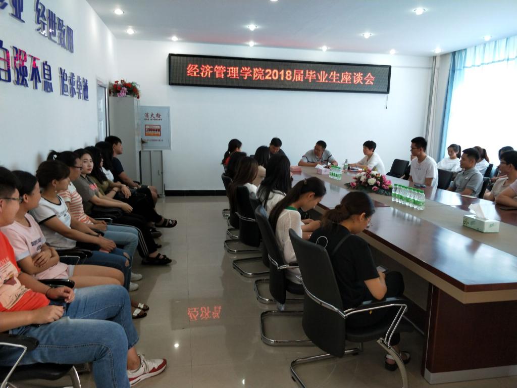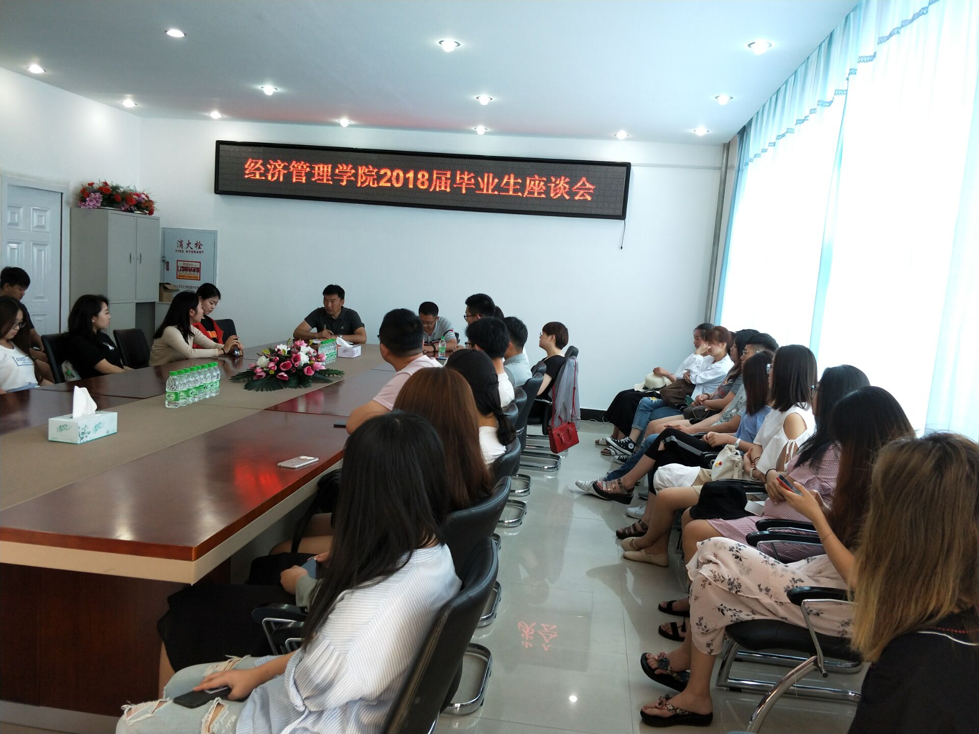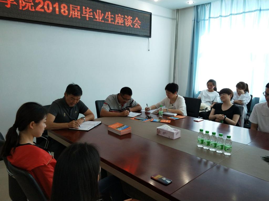 2018年6月22日8:30,滚球买球的app官网在五教402召开2014级毕业生座谈会,学院党总支书记孔若东、院长助理刘楠、市场营销系主任尚德萍、旅游管理系主任车鑫等参加会议,2014级各专业学生代表共计近40人参加会议。