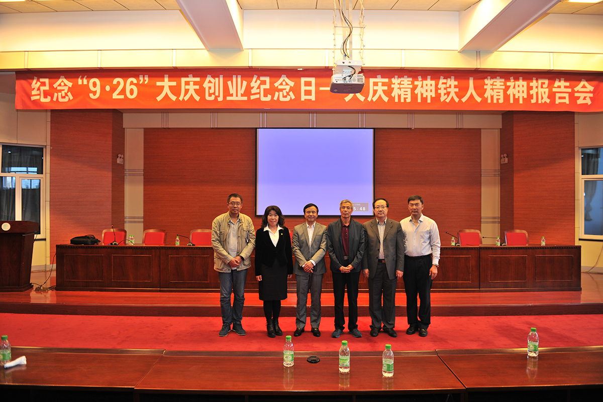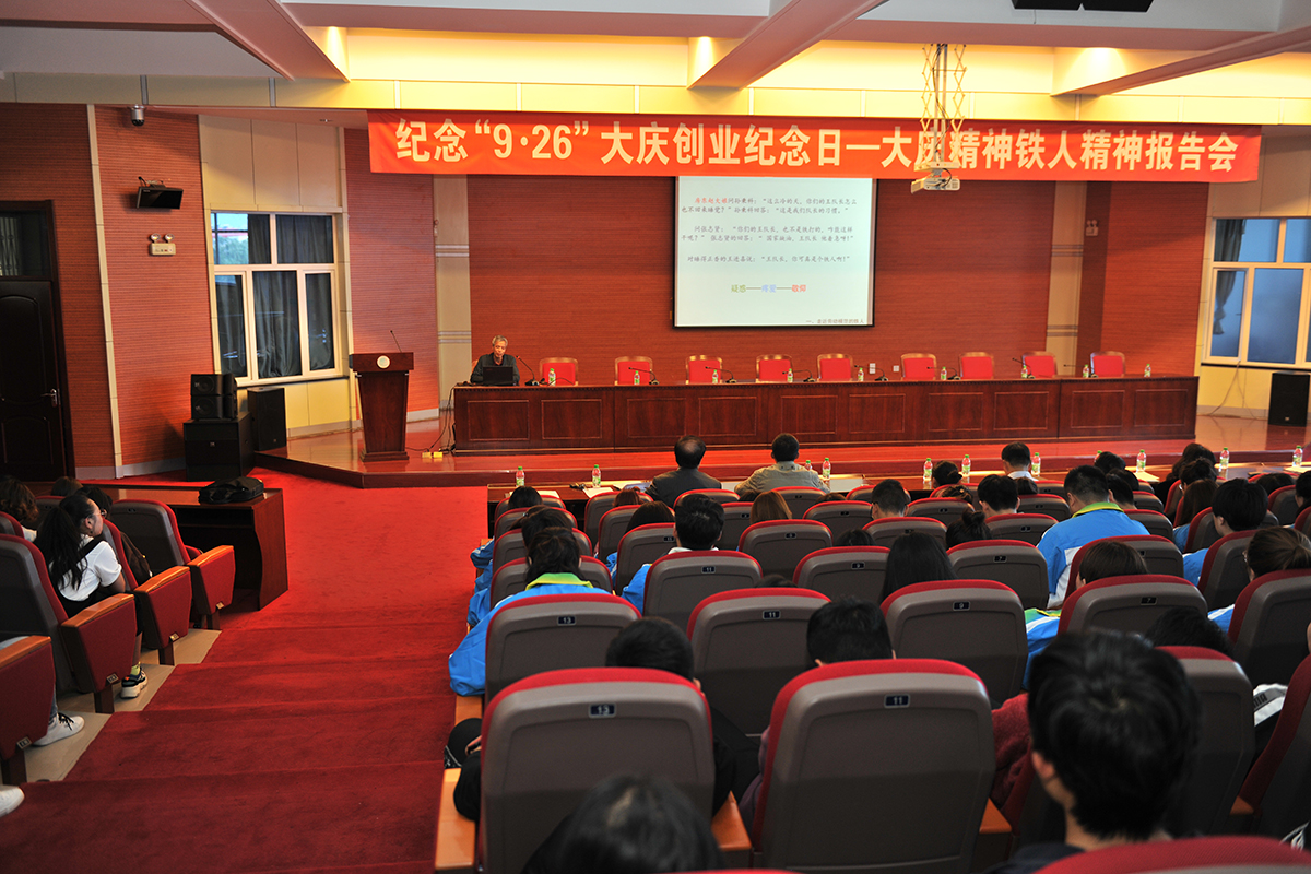 为纪念大庆油田发现59周年,9月12日,由大庆市社会科学界联合会、滚球买球的app官网主办,大庆市高校思想政治教育学会、大庆市经济学会承办的纪念“9·26”大庆创业纪念日——大庆精神铁人精神报告会在我校博雅讲堂举行,大庆市社科联副主席席书涛、马克思主义学院党总支书记赵桂英、滚球买球的app官网党总支书记孔若东等领导,与300余名师生代表共同参加了报告会,会议由学校总督学、大庆精神铁人精神研究与应用领导小组办公室主任李华主持。