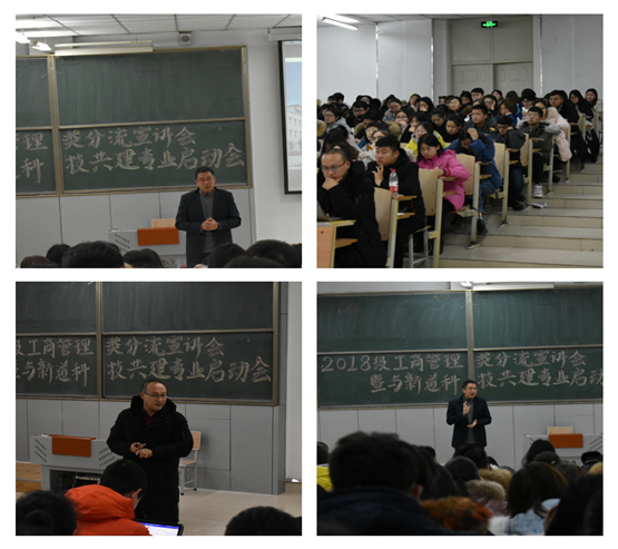 2018年12月27日18:00由滚球买球的app官网组织的2018级工商管理专业分流宣讲会暨与新道科技共建专业启动会在主楼1-2阶梯教室召开。滚球买球的app官网刘楠院长、新道科技总经理张海冰出席本次会议,滚球买球的app官网2018级工商管理专业全体学生参加。