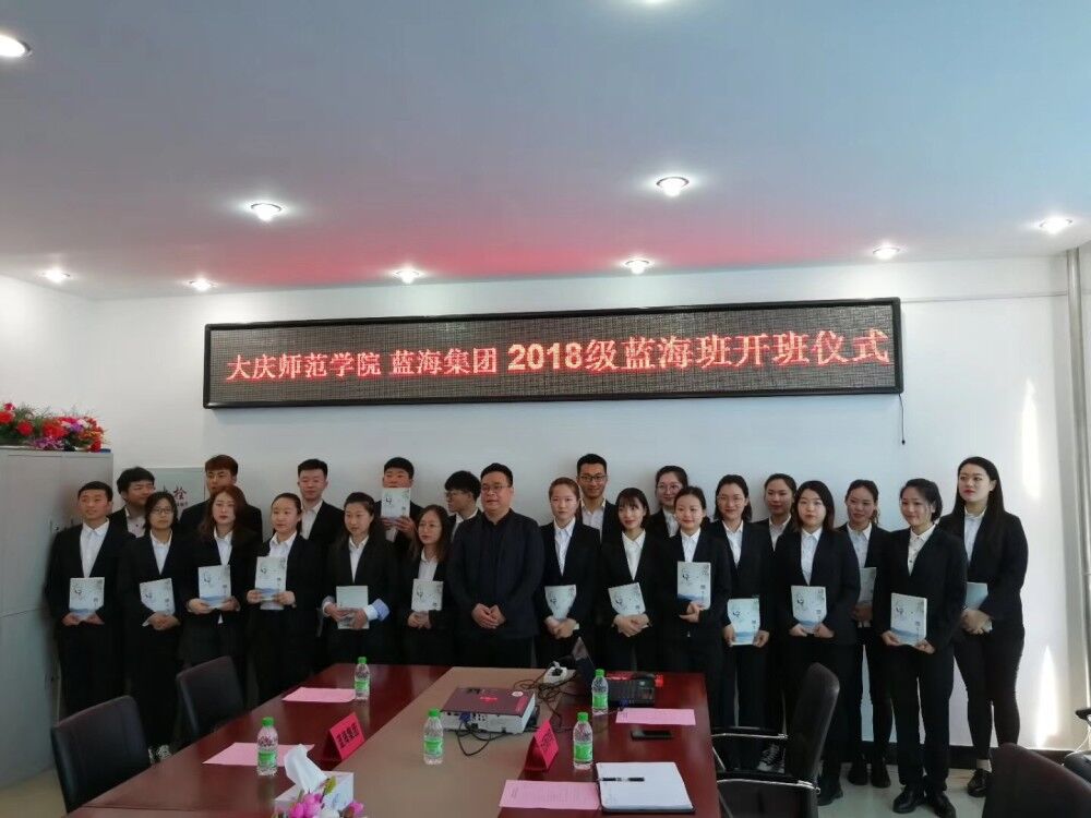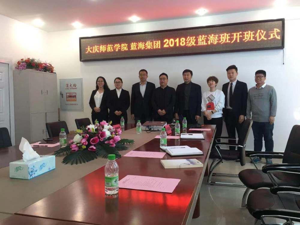 2019年3月16日10:00滚球买球的app官网、蓝海集团2018级蓝海班开班仪式在滚球买球的app官网402会议室举行,蓝海集团人力资源中心杨兆永副总经理一行4人与滚球买球的app官网党总支部孔若东书记、滚球买球的app官网刘楠院长、旅游系车鑫主任及教师代表共同出席了此仪式。杨总代表蓝海集团首先对滚球买球的app官网2018级蓝海班顺利开班表示祝贺,并对蓝海班学生提出了希望及要求,同时对滚球买球的app官网校企合作、产学研融合给予最大力度支持。刘楠院长代表经管学院对蓝海集团给予我院人才培养支持表示感谢,期待与蓝海集团在更大范围更深层次的合作。孔书记最后从我校大庆精神办学、铁人精神育人角度寄语蓝海班学生 “责任心、真功夫、好习惯、好形象”,真正成为酒店行业栋梁之才。