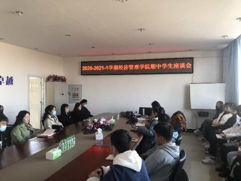 2020年10月28日下午13:30滚球买球的app官网在第五教学楼402室召开了2020-2021-1学期期中教学质量学生座谈会,会议由滚球买球的app官网督导组李媛媛、高磊、吴俊江三位教师组织,在校三个系、四个年级、30个班级(17级旅游管理、市场营销实习)的学生代表参加。