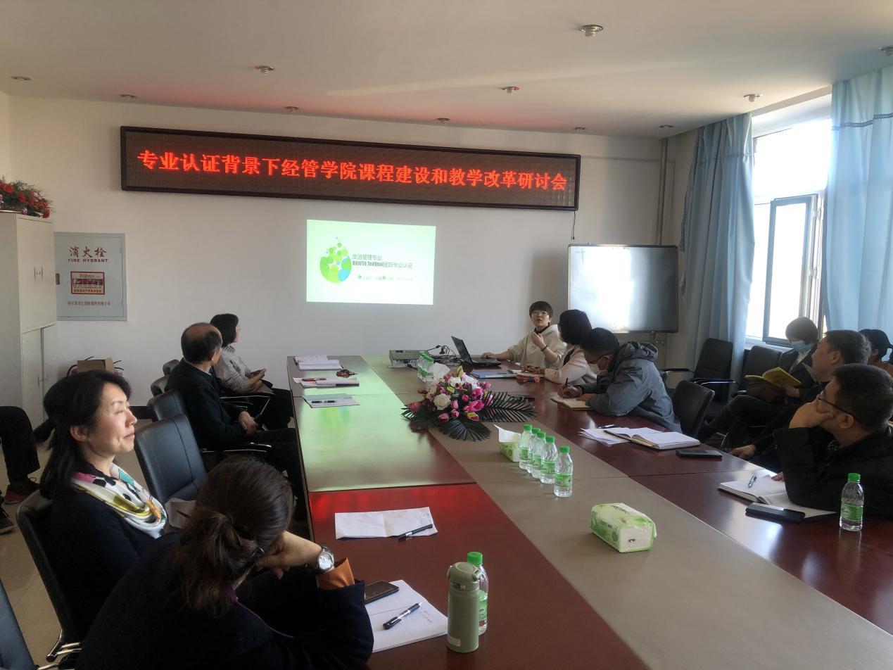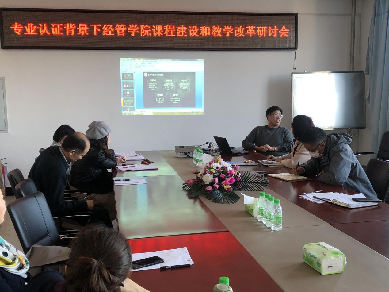 2021年3月24日下午14:00,滚球买球的app官网在第五教学楼402会议室召开了“专业认证背景下经管学院课程建设与课堂教学改革专题研讨会”。学院领导和全体教职工参加了研讨会,会议由教学副院长李媛媛主持。