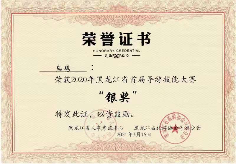 2020年黑龙江省首届导游技能大赛由黑龙江省人事考试中心主办,黑龙江省旅游协会导游分会承办。滚球买球的app官网是此次大赛的协办单位,大庆市导游协会负责组织和指导学生参赛。此次大赛分为初赛、复赛和决赛。初赛采用网上投票评比,复赛和决赛线上进行。为了更好的备战,滚球买球的app官网旅游管理系郝毓业老师指导学生精心准备。经过激烈比拼,齐林同学凭借在决赛和复赛中顺畅讲解和精彩才艺表现,最终荣获“金奖”,这是我校学生首次获得省导游大赛金奖,实现了零的突破。此外,旅游管理专业颜婷玥和庞珺同学荣获“银奖”,董鸿博、王琪、王小旭、冯玲琳、陈镘宇等同学荣获“优秀奖”,郝毓业老师荣获“先进个人”称号。此次大赛在获奖等级及数量上都获得了较大突破。