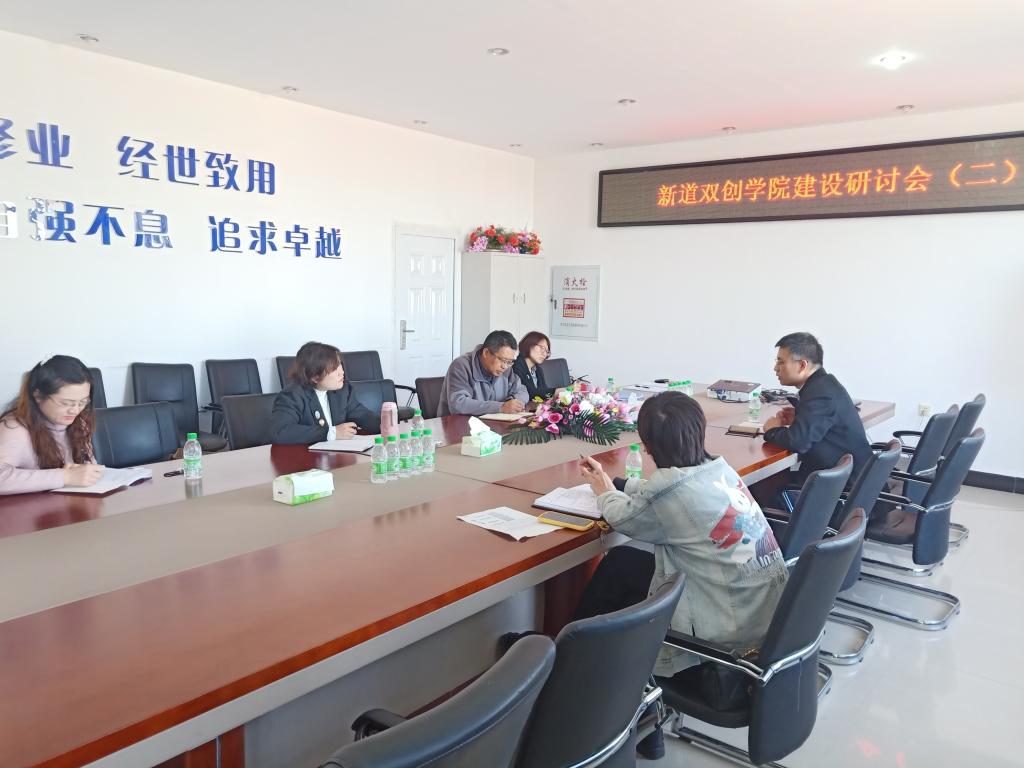 为切实推进滚球买球的app官网新道双创学院建设落实工作,2021年4月20日在第五教学楼402会议室召开了“新道双创学院建设研讨会第二次会议”。会议由滚球买球的app官网院长刘楠教授主持,教务处实践教学科王凤嫔科长、法学院院长杨铁军教授应邀出席会议。