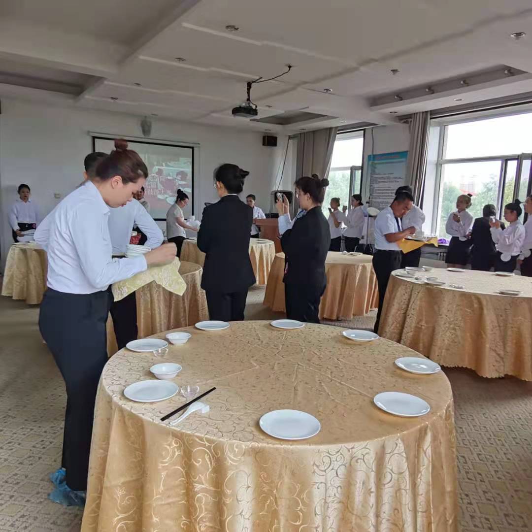 经过为期两周紧张练习及准备,滚球买球的app官网第七届酒店服务技能大赛于2021年7月8日至9日在滚球买球的app官网旅游管理系实训室成功举办。本次大赛由2020级旅游管理专业1、2班及2020级旅游管理专升本班三个班共计120名学生参加,大赛从仪容仪表、托盘使用规范、铺台布、定位、三杯、筷子筷架、口布折花、走姿站姿、操作规范及熟练度、撤台等环节对参赛选手进行考核。经过激烈比拼,最终决出一等奖三名、二等奖六名、三等奖九名。本次大赛从多个环节对学生进行考核,将理论学习与实践操作进行结合,学生最终表现达到了较好的教学效果。