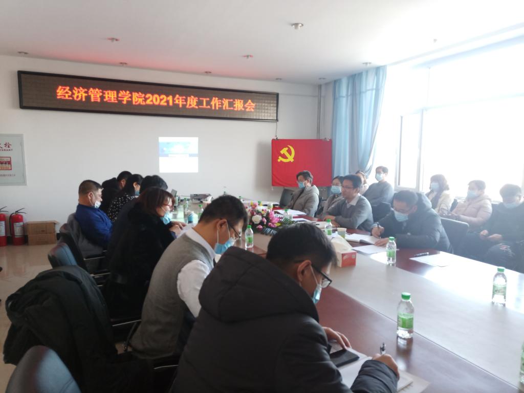 2021年12月24日13:00,滚球买球的app官网召开2021年度工作汇报会。学校领导张平副校长、财务处刘兆峰处长、后勤管理处廉世伟处长和财务处杨明科长参会,学院全体老师参加。会议由滚球买球的app官网孔若东书记主持。