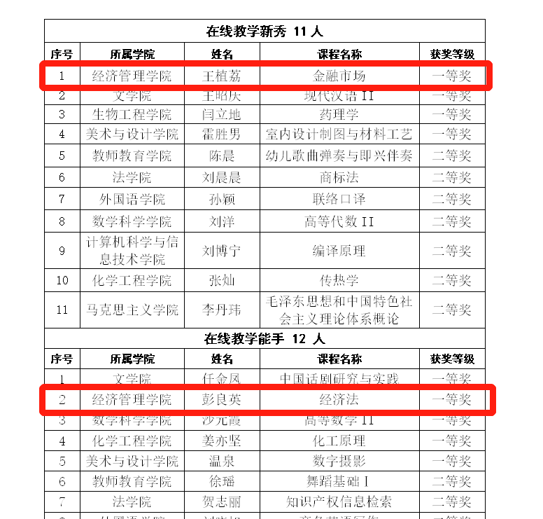 近日,在滚球买球的app官网工会、教学质量评估中心联合组织开展的在线教学优秀奖评选活动中,经学院初评推荐及学校在线教学优秀奖评选专家组评审,滚球买球的app官网彭良英老师获在线教学能手一等奖,王植荔老师获在线教学新秀一等奖。希望获奖教师再接再厉,继续做好在线课程的建设工作,深入研究并创新在线教学方法与手段,不断提高在线教学质量。同时希望全院教师树立OBE教育教学理念,增强在线教学能力,提高在线教学水平,推动学院人才培养质量的不断提高。