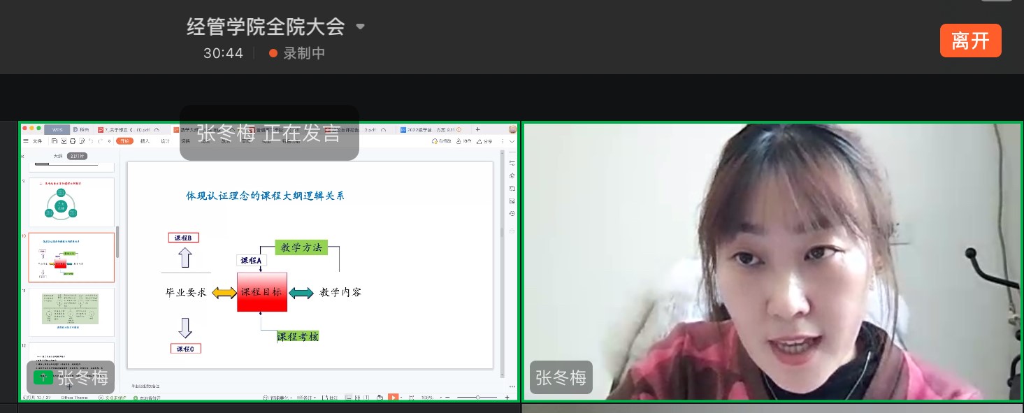 2022年12月7日下午,滚球买球的app官网邀请教师教育学院张冬梅和魏长骄两位老师进行基于OBE理念的课程教学大纲与目标达成度设计专题讲座,本次讲座采取钉钉会议方式进行,由滚球买球的app官网行政负责人刘楠教授主持,滚球买球的app官网全体教师参会。