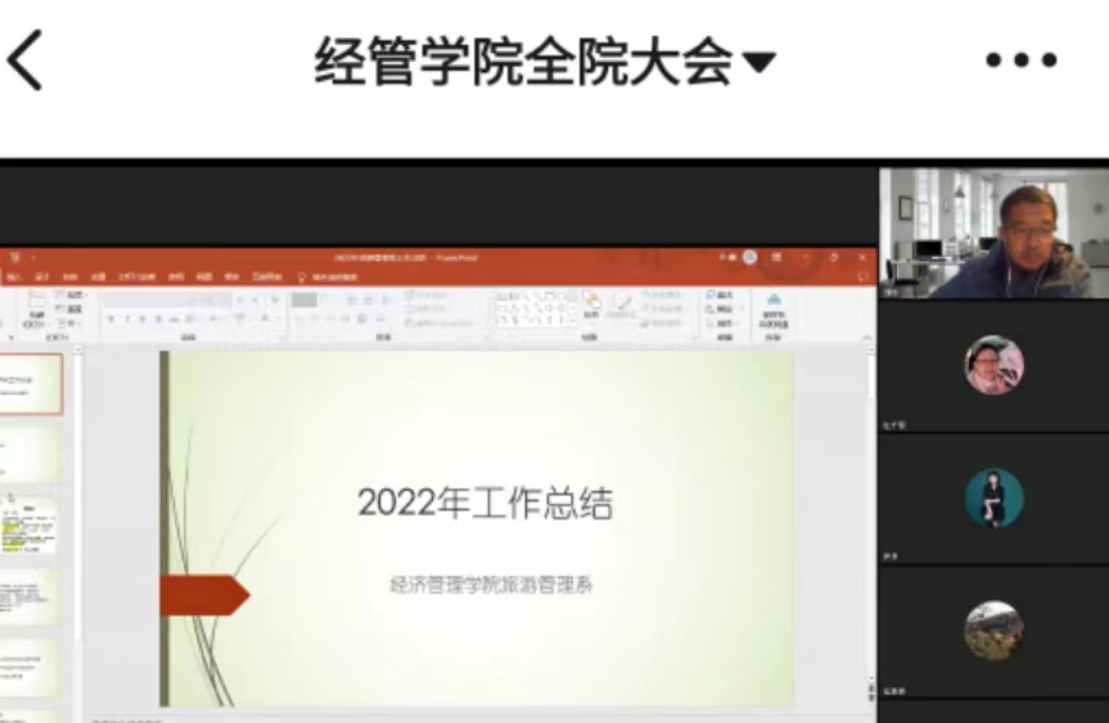 2022年12月14日13:00时,滚球买球的app官网召开2022年工作汇报总结会议,全院教职工参加会议,各专任教师对照自身年初工作计划,总结一年来取得的成果与不足,并制定了2023年的工作计划。系主任围绕专业完成情况和两点工作,总结经验做法以及存在问题。