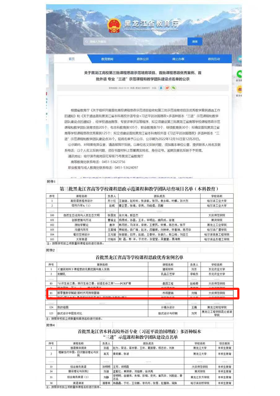 近日,在黑龙江省教育厅组织的首批高校课程思政优秀教学案例遴选工作中,经组织推荐、专家遴选、会议评选和网络公示等程序,滚球买球的app官网刘楠老师主讲的《市场营销学》中的新零售数字赋能、新时代可持续营销案例获首批黑龙江省高等学校课程思政优秀案例。希望全院教师以此次为契机,深入挖掘专业课程本身所蕴含的思政元素,探索和创新课程思政建设方法,进一步深化课程思政教学改革,强化课程育人导向。