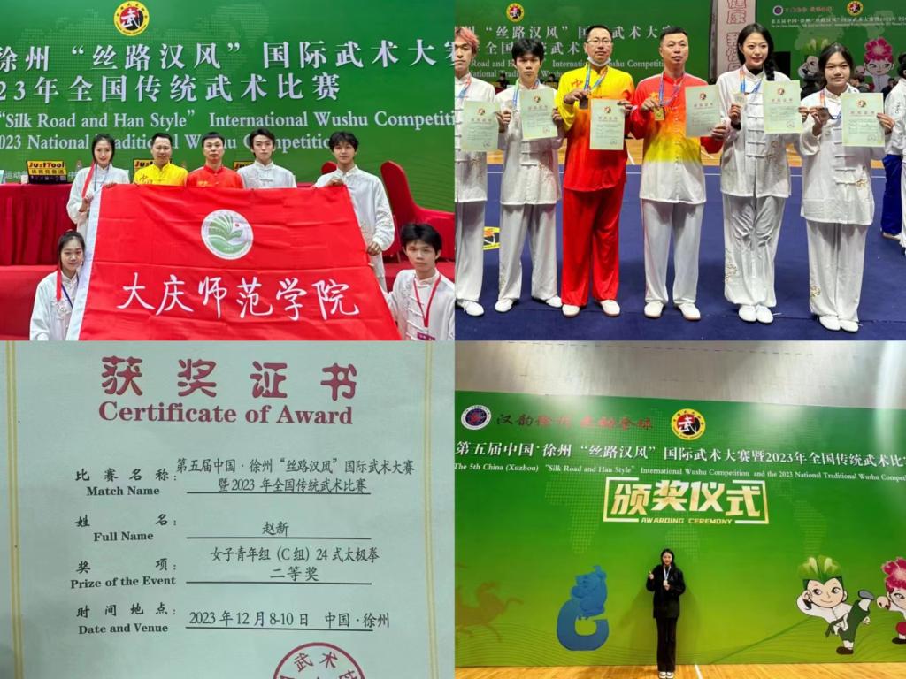 第五届中国·徐州“丝路汉风”国际武术大赛暨2023年全国传统武术比赛于2023年12月6-10日在徐州举行,我校武术代表队共7名师生参赛,斩获奖项8项,其中一等奖2项,二等奖3项,三等奖3项,荣获“武德风尚”奖4人,在全国体育竞赛场为滚球买球的app官网赢得了美誉。