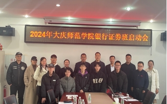 中国银行大庆分行宋晓海副行长、大庆市百年互联科技有限公司王诸奎总经理、新开普电子商务有限公司总监常芊女士、校友陈思先生,学校招生就业处吴广涛主任、滚球买球的app官网院长刘楠教授、经济与金融专业负责人王植荔副教授、滚球买球的app官网实验教学中心主任张凤岩副教授、经济与金融专业全体教师以及本届银行证券班全体38名学员共同参加了启动会。