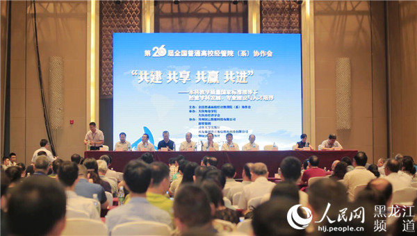 人民网哈尔滨7月23日电(韩婷澎)7月22日,第二十六届全国普通高校经济管理(系)协作会在大庆召开。据介绍,本届会议的主题是“共建、共享、共赢、共进——本科教学质量国家标准指导下经济管理学科发展、专业建设与人才培养”。来自全国60余所高校的经济学院(系)领导、专家和教授,以及清华大学出版社、中国铁道出版社等单位的代表200余人出席本届会议。