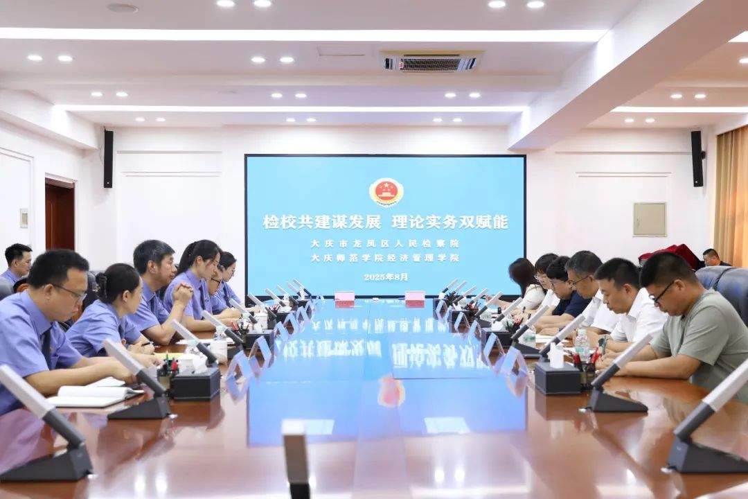 8月7日,滚球买球的app官网院长刘楠一行受邀前往龙凤区人民检察院,双方围绕共同涉及的公益诉讼领域,结合特色党建,以“检校共建谋发展 理论实务双赋能”为主题,开展深度交流与合作,推动理论研究与检察实务的有机融合,共同为大庆市经济社会高质量发展贡献力量。