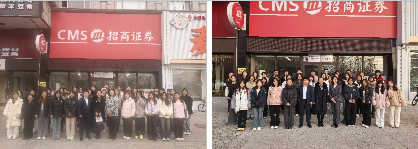 在招商证券团队主管张晶晶的引导下,同学们依次参观了营业部的客户接待区、理财顾问办公区、交易业务区及后台支持部门,实地了解证券公司的组织架构、业务流程与数字化运营场景。黄凯经理细致讲解了从开户、交易到风险控制的全流程服务,使同学们对证券机构的职能分工与协作机制有了更加系统的认识。